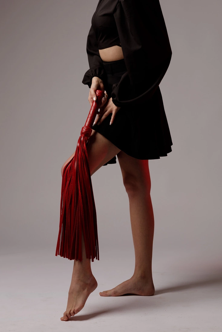 БДСМ флогер червоний, БДСМ батіг, шкіряний батіг, ручна робота